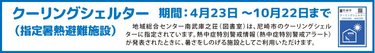 | クーリングシェルター(指定暑熱避難施設)は、尼崎市のホームページでも案内されています。終了しました。 |