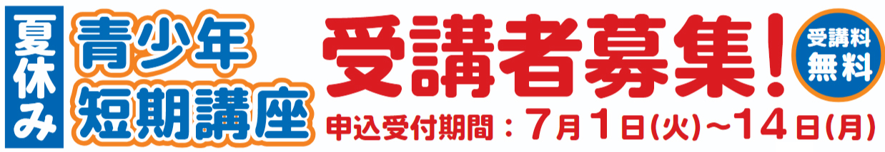 | 受講生募集!令和7年度 青少年定例講座 | ||||||||||||||||||||||||