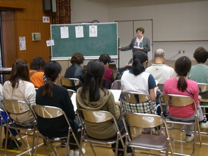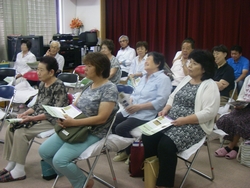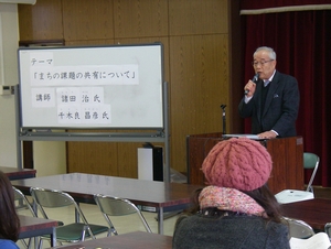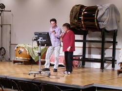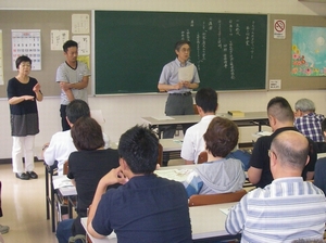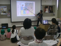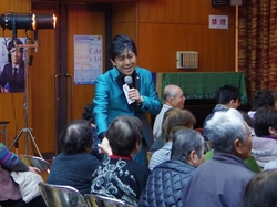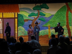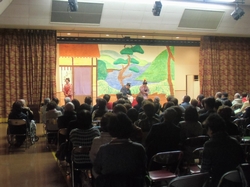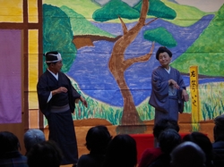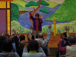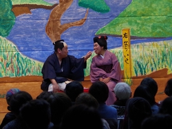 演劇グループ・淡海プロデュースは、平成12年に旗揚げ。社会人を中心に主婦や自営業者など40代から80代までの14名のメンバーで、尼崎市内を中心に演劇活動を行っています。 モットーは「涙と笑いのこころ芝居」。代表の西岡つよしさんが書き下ろし、演出するオリジナル喜劇を来場のみなさんが心ゆくまで楽しみました。 劇の後、代表の西岡つよしさんが、今回のお芝居のテーマでもある「人間を思い合うこころ」について語っていただきました。西岡さんに歌って欲しいというリクエストも飛び出し、最後まで温かな空気に包まれていました。