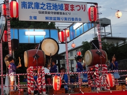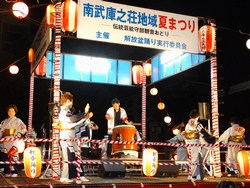 42回目を数える夏の風物詩「南武庫之荘地域夏まつり」が 今年も開かれました。 今回のまつりに合わせて練習を重ねてきた“子ども太鼓”や保育所児童による盆踊りが披露されました。1日目は突然の豪雨で中止になりましたが、2日目は好天になり、無事に披露できて良かったですね。 地元の伝統芸能「守部観音おどり」や恒例となった伝統河内音頭継承者の河内家菊水丸さんをゲストに迎えての盆踊りもにぎやかに繰り広げられ、暑い夏の夜をみなさんが楽しんでいました。