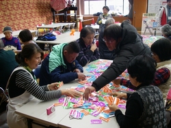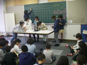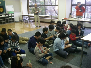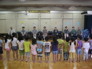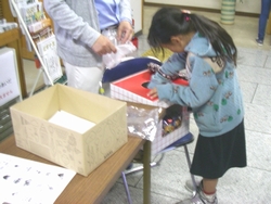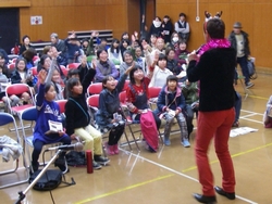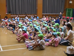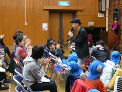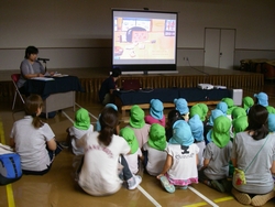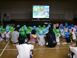 他人と争うことなく、共に暮らしていくにはどうしたらいいのでしょうか。そんな平和について一緒に考えてみる集いを開きました。近隣の保育所からの大勢の子どもたちと一緒に、トライやるウィークで保育所に来ている中学生たちも参加してくれました。 絵本「ぼくがラーメンをたべるとき」「ピース・ブック」や、DVD「世界をしあわせに」を鑑賞し、佐藤由希子さんが子どもたちに分かりやすくおはなしして くれました。何気ない日常の中にも、平和について考えるきっかけになることが、たくさんあることにあらためて気付くことができました。