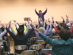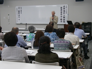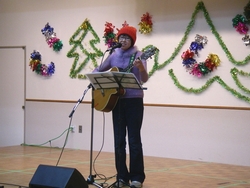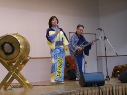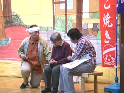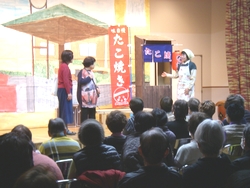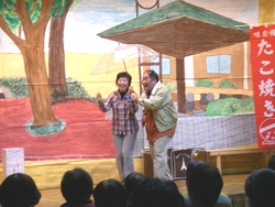 人権週間特別企画として、西岡つよしさん率いる淡海プロデュースによる人情喜劇をお届けしました。 演劇グループ・淡海プロデュースは、平成12年に旗揚げ。社会人を中心に主婦や自営業者など40代から80代までの14名のメンバーで、尼崎市内を中心に演劇活動を行っています。 代表の西岡つよしさんが書き下ろし、演出するオリジナル喜劇「ハッスル!夫婦どろぼう」では、近所の人々との心のふれあいを通して、まっとうに生きていくために気持ちを入れ直す夫婦の姿が描かれました。 ふれあいトーク&ソング「にんげんバンザイ!」では、西岡さんの歌声に合わせて体操したり合唱したり、みなさん心ゆくまで楽しまれてました。