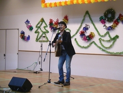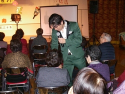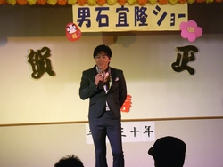 今年もまた新春福祉懇談会に演歌歌手の男石宜隆さんをお招きしました。 メジャーデビュー曲『大阪泣かせ雨』や、平成29年8月16日に発売された大阪シリーズ第二弾『大阪ひとり酒』を熱唱されました。その甘いマスクや透き通った美声に、魅了された方が多かったようです。 曲作りに絡んだ数々のエピソードも軽妙に語っていただき、会場は新春から笑顔があふれ、心地よい温かさに包まれていました。