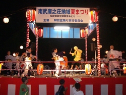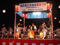 43回目を数える夏の風物詩「南武庫之荘地域夏まつり」が 今年も開かれました。 今回のまつりに合わせて練習を重ねてきた“子ども太鼓”や保育所児童による盆踊りが披露されました。 地元の伝統芸能「守部観音おどり」や恒例となった伝統河内音頭継承者の河内家菊水丸さんをゲストに迎えての盆踊りもにぎやかに繰り広げられ、暑い夏の夜をみなさんが楽しんでいました。 2日目はあいにくの雨となり、地域総合センターの集会室での芸能大会となりましたが、ほのぼのとした温かい雰囲気の中で、みなさんが盆踊りや太鼓の演奏を楽しまれていました。